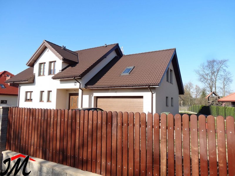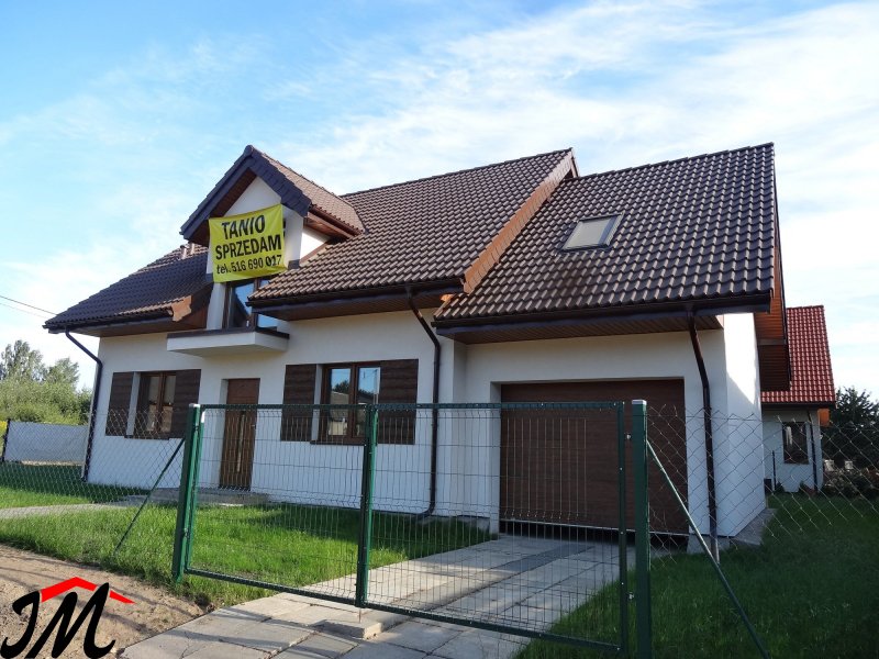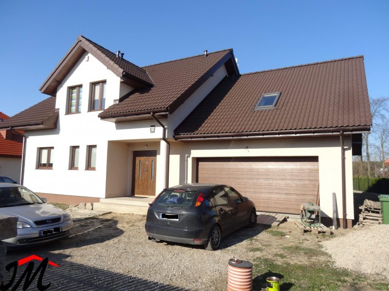 Dom jednorodzinny z poddaszem użytkowym oraz garażem o pow 155 m2 w stanie deweloperskim, działka ogrodzona oraz zagospodarowana.